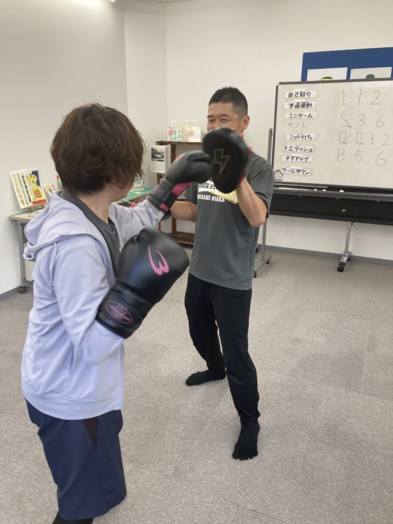 ミット打ちはエアロボクシングのコンビネーションをもとに今日はしっかりめに打ってもらいました。