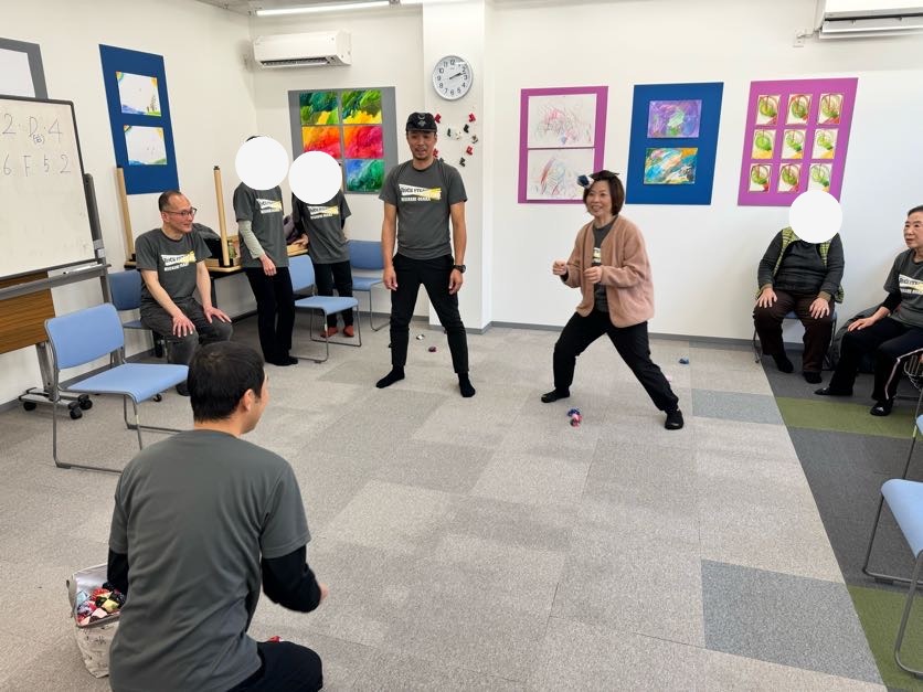 まずは、飛んでくる豆(お手玉)をヒラリと避ける練習から。 最初は恐る恐るだった皆様も、回を重ねるごとに動きがキレッキレに!「次はこう避けよう」と、無意識に新しい体の使い方をマスターしていく姿は、まさにボクサーそのものです。